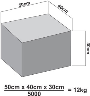 It is an industry standard that courier consignments are charged at the greater of either the actual weight or volumetric weight. Volumetric weight is calculated by multiplying the length, breadth and height (in centimetres) and dividing this by the applicable volumetric conversion factor which is 5000.